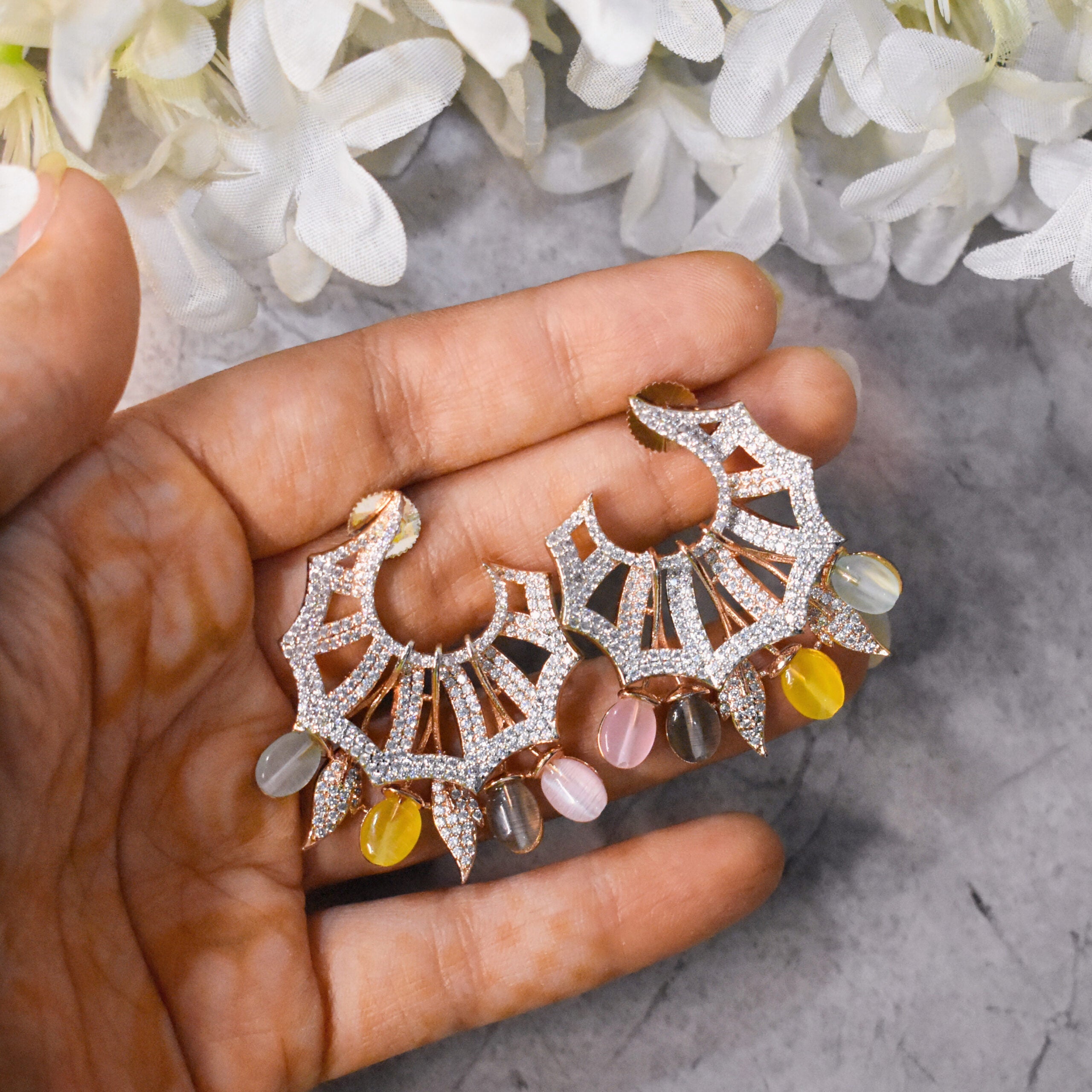 • Material:  Brass based studded with american diamonds