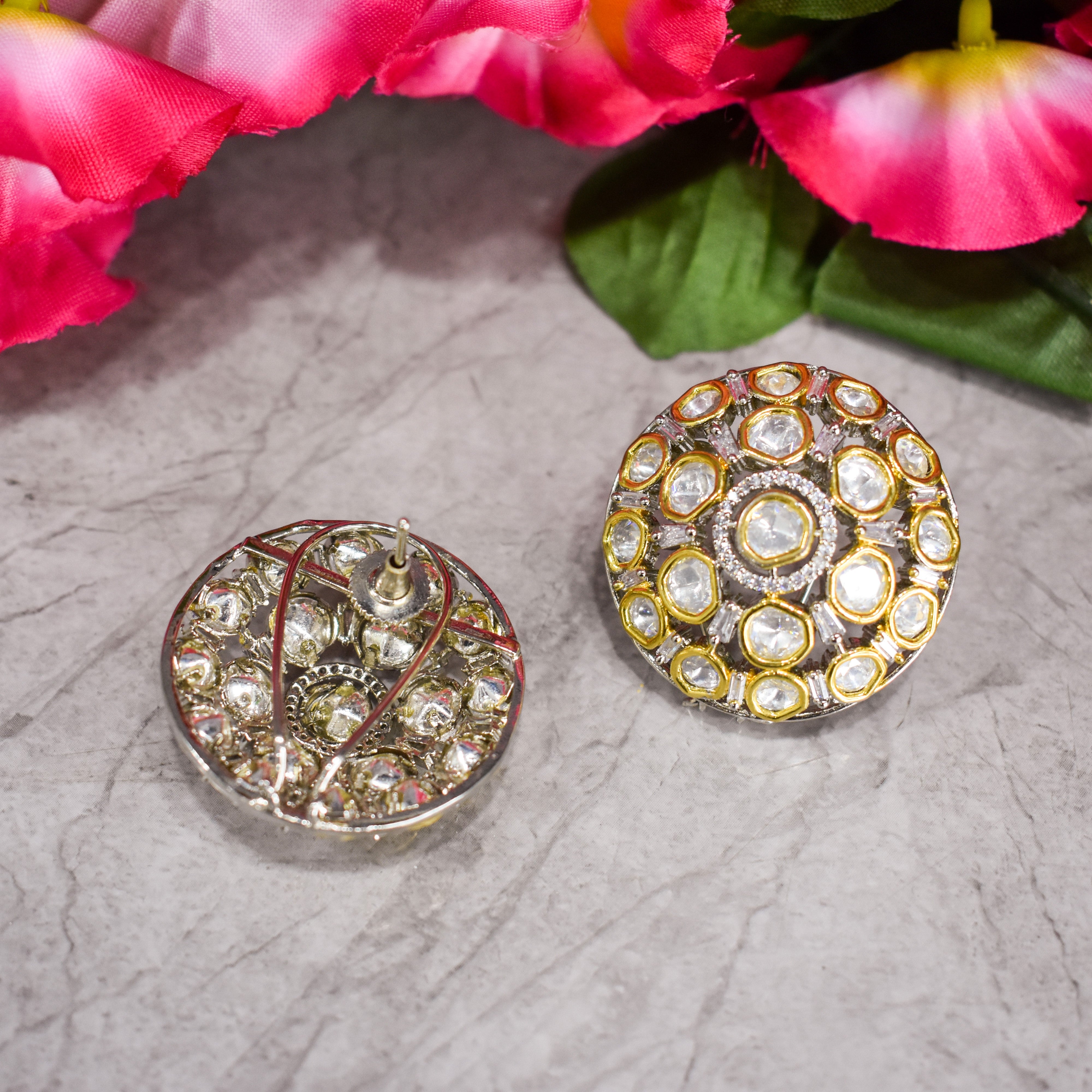 Round Polki Studs in Dual Tone